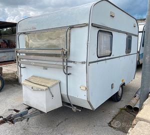 Come da Titolo vendo Roulotte 4 posti in Buone condizioni, compreso di 2 Gazebo, Frigorifero, tavolino per esterno, wc chimico, sedie.