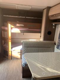 Vendo roulotte Hobby del 2014. Lunghezza 7,443 larghezza 2,3. Letto a castello letto matrimoniale dinette con possibilità di altro letto. Bagno, aria condizionata, stufa a gas con riscaldamento a pavimento, sempre rimestata al coperto. Serbatoio acque grigie, moover. Tendalino caravanstore Fiamma XL. Impianto radio e tv, pannello solare sul tetto e antenna satellitare.