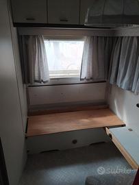 Roulotte Hobby del 1990 in buono stato. Utilizzata sempre come stanziale. Revisione e gomme di 3 anni fa. Ha fatto solo il tragitto dal rimessaggio al campeggio (2 km circa). Due dinette per 4 posti letto, cuscineria completa, cucina interna mai utilizzata, bagno. Completa di veranda Malaga con pavimento a stuoia, cucinotto Bertoni, gazebo telescopico 3 x 3, ruota di scorta. Il cucinotto è attrezzato con 2 cassettiere ed un mobile contenitore in PVC, Fornello doppio campigaz con bombola da 2,7 kg, frigorifero 90 lt con vano freezer stile vintage colore rosso. N° 4 sedie in acciaio tipo bar, tavolo in PVC da 180 cm, due lettini sdraio regolabili in PVC con cuscineria, luci, prolunghe e cavi esterni. Visibile a Montalto Marina (VT) previo appuntamento. VENDO IN BLOCCO AD EURO 5000. Possibilità di acquisto solo caravan e veranda ad euro 4500 trattabili.