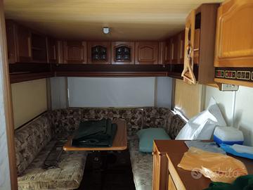 Roulotte knaus 4307, circa 6,50 metri compreso il tiro, poco più di 2 metri di larghezza, bollata e con libretto. Essendo stata ferma in campeggio per anni, Sicuramente ha bisogno di una revisione. Senza elettrodomestici ne doccia, vaschetta wc estraibile dall'esterno.