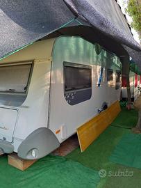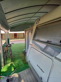 Vendo Roulotte in ottimo stato, revisionata, gancio stabilizzatore, 6 posti letto, usata pochissime volte per andare al mare. Lunghezza 7.30 e Larghezza 2.30. Cucina intatta perché si cucinava sempre all'esterno. Nella vendita é compresa la veranda che vedete nella foto con tutta la palettatura in alluminio anodizzato e con il pavimento verde all'interno.. Cavalletti stabilizzatori. All'interno trovate stufa, frigo, letti con materassi in memory con cuscini abbinati e ruota di scorta. Adatta anche per la montagna. Si prega di contattarmi negli orari di pranzo e cena al numero 347 2706747. Lorenzo