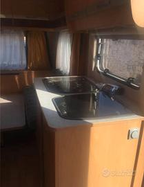 Vendo Roulotte Knaus Sport 400 LK del 2007, camperizzata, pneumatici nuovi, ruota di scorta, freni nuovi, revisione fatta. Dotata di: - wc thetford con cassetta estraibile - dinette anteriore trasformabile in letto matrimoniale - 2 letti a castello posteriori, letto posteriore trasformabile in seconda dinette richiudendo il letto a castello superiore - frigo trivalente - tendalino - cucina con 3 fornelli - doccino acqua esterno - serbatoio acqua 100L - boiler truma acqua calda - stufa trumatic con ventilazione - gancio alko - climatizzatore dometic - televisore - antenna satellitare automatica con visione gratuita di tutti i canali del digitale terrestre. No infiltrazioni. Se realmente interessati la si può venire a vedere al rimessaggio coperto. Tutto funzionante. Astenersi perditempo.