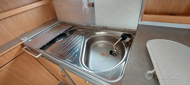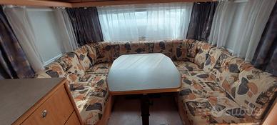 Roulotte Knauss Sudwind blue anno 1998, 4 posti letto con bagno. Lunghezza 6,85 metri. Tenuta sempre in garage, ottime condizioni, mai utilizzato gas ne' acquaio. Veranda syra completa. Disponibilità a vendere anche tutte le attrezzature da esterno (tavoli, sedie, gas esterno completo di mobile, scarpiera ..)