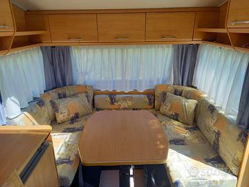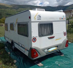 Vendo roulotte Knaus Sud wind 500 TF, anno 2002, 4 posti, in ottime condizioni generali, completamente camperizzata e autonoma, pronta all’uso. Roulotte molto ben accessoriata, ideale sia per vacanze che per utilizzo stanziale o su terreno privato, grazie alla dotazione che la rende particolarmente indipendente. Dotazioni principali: •Boiler Truma acqua calda da 5 litri •Serbatoio acque chiare da 80 litri con carico dall’esterno •Climatizzatore Autoclima inverter con pompa di calore •Mover automatico Obelink Prestige, ancora in garanzia •Stabilizzatore AL-KO AKS 1300 •2 pannelli solari da 100W •Batteria NDS da 100 Ah •Caricabatteria 220V •Antenna TV digitale terrestre •Portabici Fiamma per 2 posti •Tendalino Fiamma F65 •Bloccaporte Fiamma su porta principale e gavone Disposizione interna: •Ampia dinette anteriore •Letto matrimoniale fisso •Bagno con doccia e WC •Cucina attrezzata •Armadi e numerosi spazi di stivaggio La roulotte si presenta accogliente, ben tenuta e già pronta per essere utilizzata senza dover fare lavori. Prezzo: 8.900 euro leggermente trattabili Solo se realmente interessati. Non si vende per bisogno ma per inutilizzo