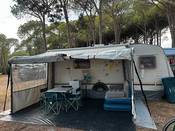 VENDO bellissima Knaus Sudwind 550 anno 2003 in ottime condizioni,vendo per passaggio a Camper.. 6 posti letto così composti: -Letto a castello posteriore a doghe(con luci notturne) -Dinette centrale grande,trasformabile in letto matrimoniale -Letto fisso anteriore matrimoniale alla francese con doghe -Tutte le zone sono separabili da apposite porte a scomparsa -Toilette con doccia e lavandino esterno,con grande specchiera Accessoriata con: -Antenna -Cucina a tre fuochi -Frigo trivalente -Stufa Truma a gas,canalizzata,a ventilazione forzata con bocchette a pavimento -WC Thetford a cassetta estraibile(c200) dall'esterno con serbatoio acqua dedicato -Maxi oblò -Boiler acqua calda Truma Therme -Serbatoio acque chiare -Finestre con oscuranti e zanzariere -Moover con telecomando -Portabici anteriore (2 posti) -Stabilizzatore AL-KO Aks -Ruota di scorta -Luce esterna(per la veranda) -Tantissimi armadi cassetti e scarpiera -Gavone frontale(apertura a chiave da l’esterno) -Gavone laterale sotto il letto matrimoniale(apertura a chiave da l’esterno,e internamente sollevando il materasso) -Gavone sotto il letto a castello(apertura da l’interno sollevando il materasso) -Tendalino Fiamma Zip 450cm,con -Veranda Fiamma Zip(si monta al tendalino con le apposite zip)con doppia finestra con zanzariere • Dimensioni e pesi: - lunghezza incluso timone 735 cm - larghezza 248 cm - peso a vuoto 1190 kg -F2 1400 Kg(massa a massimo carico) Prezzo €12000 Trattabili Whatsapp +393408397185 Alessandro