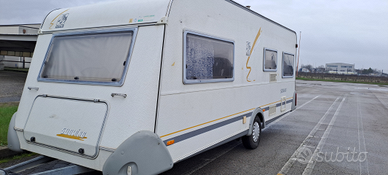 Vendo Knaus Sudwind 6 posti letto ben aereggiati, un matrimoniale in coda e uno davanti affiancato da letto a castello, finestre complete di zanzariere e oscurante, completa di veranda. Cucina mai usata, Bagno con cassetta estraibile e doccia, Stufa della truma a gas, Frigo trivalente, tenuta gelosamente, Pompa acqua nuova della Vivor, scalda acqua elettrico sostituito nuovo 10lt. Tutto funzionante, gancio antisbandamento Al-Ko, FRENI NUOVI gomme ottime percorsi pochi km. REVISIONE fatta alla motorizzazione! pronta per viaggiare compresa di targa ripetitrice ufficiale.
