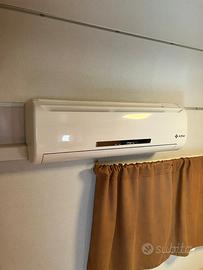 Due letti da 120x200, bagno con doccia calda e vater sanitrit automatico ,dotata di climatizzatore, ben ammobiliata con mobili portabiti e cucina completa di fornelli frigo e lavandino,doppie tende, trasparenti e oscuranti ,