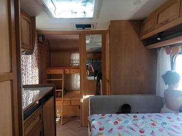 Roulotte 6 posti letto ben tenuta ! Doppio serbatoio acqua chiare , camperizzata con pannello e batteria a gel a scarica lenta, pneumatici cambiati , cassetta estraibile , zanzariere ed oscuranti , luminosa , lunga 6.90 compreso di timone , larga 2.20 ! A libretto 9.15kg peso , cambiate tutte le lampadine a basso consumo, revisione non fatta , aria condizionata, rifatti la cuscineria da sarta specializzata con materiale anti macchina e' stata igenizzata ! Non ci sono infiltrazioni!