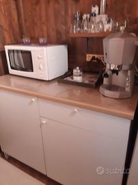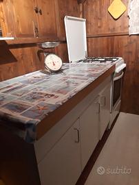*Cucinotto con cucina 4 fuochi+forno e 2 frigoriferi piano lavoro e mobile stoviglie