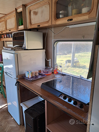 Vendo roulotte (vintage) del 1987 ben tenuta e molto grande! Abbiamo fatto delle modifiche per renderla un minialloggio. Bagno con doccia grande, piano cottura di casa, boiler per acqua calda elettrico (una bomba!) Lavello con gocciolatoio grande, frigo da appartamento, impianto elettrico nuovo e impianto acqua nuovo. La stufa Truma funziona benissimo. Che dire ... solo veramente interessati.
