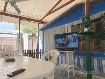 Cedo causa acquisto Camper,nel villaggio S.anastasia a pochi minuti da terracina e Sperlonga,una piazzola completa di roulotte tedesca Burstner, versione più larga del normale comoda per spazi e letto centrale con i comodini ai lati, bagno ampio con wc in ceramica e doccia con anche la seduta. al momento disponibili 7 letti, eventualmente si puo aggiungere un ulteriore divano letto. cucina completa con 5 fuochi,2 frigoriferi,lavatrice e mobiletti vetrina già completi di stoviglie e fornetto elettrico.