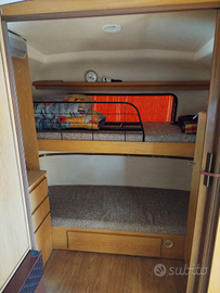 6 posti letto ( 2 nel preingresso + 2 nella roulotte + letto a castello )