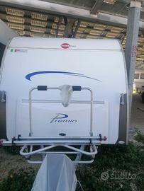 Roulotte usata pochissimo ,come nuova, con 5 posti letto, piano cottura ,un bagno ,gazebo incorporato e porta bagagli con attrezzatura per portare le bici