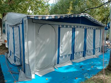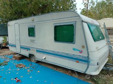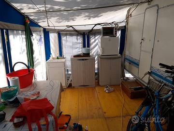 Vendo roulotte Adria Unica 6 posti in discrete condizioni con veranda e pavimento in legno visibile presso camping Adria a Riccione .