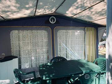 Roulotte Roller più tendelalino con veranda cucinino più tavolo con sedie forno frigo tutto ciò per fare un ottimo campeggio ventilatore ecc