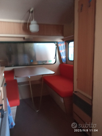 Vendesi roulotte stile retrò, anno 1975, conservata con cura in garage. Unico proprietario. Modello Roller R6, 0,43 m di lunghezza. Ideale per campeggio, vacanze o come bungalow. Dotata di: