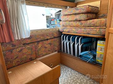 No infiltrazioni, portapacchi e 2 oblò sul tetto, finestre su 3 lati, compresa di veranda, ampio vano anteriore e laterale, bagno ottime condizioni, tenuta presso giardino privato, campeggio 20 giorni all'anno.