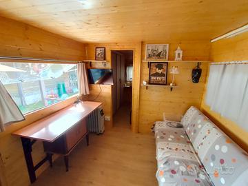 Vendesi roulotte stanziale ad euro 8.000 presso campeggio "El Ranchero" di Novate Mezzola (SO). Completamente ristrutturata al suo interno nel 2024. Una camera da letto, divano letto in zona giorno, cameretta singola, cucina interna con lavandino e acqua fredda, fornelli sia dentro che fuori in cucina esterna. Wc chimico, no allacciamento fognario. Ampio spazio esterno ad uso esclusivo.