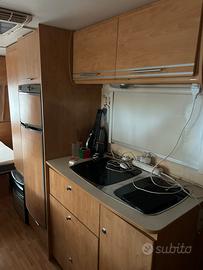 6 posti letto con dinette centrale/letto, letto matrimoniale con doghe in legno e due letti a castello in coda. Frigo grande a colonna 130 LT, cucina 3 fuochi e stufa a gas Truma , boiler ,Aria Condizionata Dometoc istallata due anni fa.