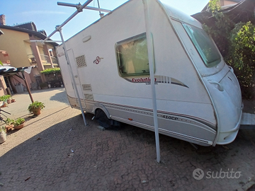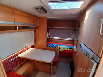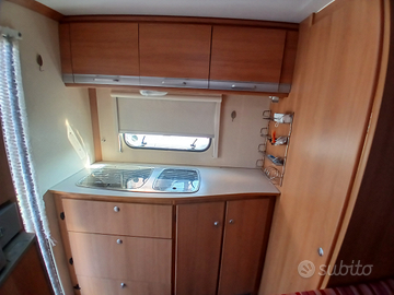 In condizioni buone, frigo grande, matrimoniale fisso, bagno con doccia, wc con cassetta estraibile esterna, serbatoio acque grigie,acqua chiara 120 litri ,zanzariere, oblò grande cambiato due anni fa,veranda a tendalino, telaio alko, gancio antisbandamento. Da fare revisione, controllare frigo a gas e trasformatore, la finestra ant. È stata riparata alla buona , finestra bagno un po lesionato.