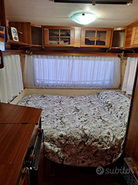 Vendo roulotte Tabber con 4 posti letto, bagno con toilette a cassetta Thetford, riscaldamento con stufa Trumatic canalizzato in tutto l'ambiente e tettoia esterna.