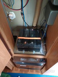 2 batterie lifepo4 ioni di litio frigorifero nuovo a compressione impianto elettrico totalmente revisionato, interni in buone condizioni cuscini rifatti 3 posti letto e tanti ripostigli sevizio con doccia tubi gas revisionati stufa a gas da collegare allo scarico fumi . La roulotte è da revisionare perché ferma in proprietà da 2 anni causa acquisto casa al mare no perditempo non la svendo.