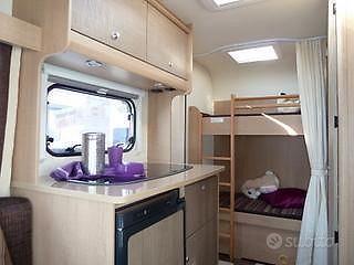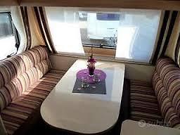 Vendo Caravan Burstner Premio 385 TK pari al nuovo. Compatta e pratica trainabilissima grazie alle ridotte dimensioni e peso che però non ne inficiano il comfort. DOTAZIONI ED ACCESSORI: - Zona Toilette: WC Thetford Serbatoio di scarico 22 l, estraibile Piatto doccia Lavandino - Zona Cottura: Frigorifero 80L Thetford Lavello, piano cottura a gas a 3 fuochi con coperchio in vetro Frigorifero 80L Thetford - Zona Giorno: Dinette con 2 divani e tavolo trasformabile in letto matrimoniale Serbatoio Acqua 80 lt con attacco esterno Zanzariera porta entrata - Zona Notte: 2 letti a castello con rete a doghe e materassi in schiuma di lattice 1 letto matrimoniale ricavato dalla dinette materasso letto matrimoniale in memory foam - Riscaldamento: Truma S 3002 - Accessori esterni: Portabici anteriore Fiamma per 2 bici Portabici posteriore Fiamma per 2 bici Tendalino in pvc ed alluminio - Impianto elettrico: Illuminazione 12 V / 230 V Luci interne ed esterne a LED Luce veranda esterna a LED, con interruttore nella zona d'ingresso Prese corrente 230 V Trasformatore da 300 VA Interruttore centrale Luci ingombro a LED - Chassis: Telaio AL-KO Stabilizzatore AKS 1300 Gavone di servizio 1000x305 davanti Porta ruota di scorta nel gavone portabombole Ruota di scorta Crik Al-ko per sostituzione ruota Attacco per doppia bombola GAS Isolamento per passaruota - Dimensioni e pesi: Peso 770 kg Peso complessivo massimo 900 kg Lunghezza totale con timone 579 cm Lunghezza sola cellula abitativa 435 cm Larghezza 210 cm Altezza 258 cm