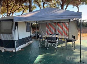 Vendo roulotte anno 1985 ristrutturata, completa di veranda,cucinotto,gazebo,4 sedie un tavolo e le mattonelle sia per il cucinotto che per la veranda. La Roulotte è in buone condizioni generali, è dotata di 3 posti letto, le finestre sono dotate di zanzariere e oscuranti nuovi. Nella veranda le due finestre laterali sono munite di zanzariere oscuranti e antivento nuovi. La roulotte si trova ad albinia al campeggio africa. Lunghezza 5,1 metri larghezza 2 metri ( peso 580 kg) Prezzo trattabile