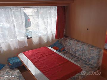 vendo causa inutilizzo roulotte adria anno 1982, TARGATA SLOVENIA lunghezza totale metri 6,10 peso kg 800 circa, trasportabile su strada, gomme nuove, collaudo fino ad aprile 2026, letto matrimoniale fisso e dinette trasformabile in letto, bagno con doccia, cucina con frigo, tanti armadietti sulle pareti e due armadi. nessuna infiltrazione d'acqua, ottimo stato. scambio anche con auto funzionante .... prezzo un poco trattabile