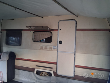 Vendo roulotte attrezzata di gazebo, tavolo con sedie, veranda, cucina,fr igo e freezer.