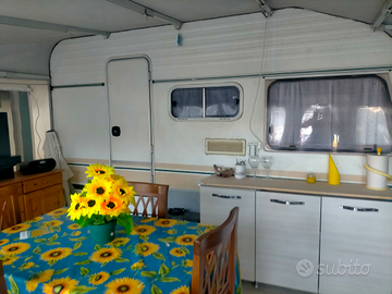 Vendo graziosa roulotte tre posti originale senza documenti possibilità di allaccio alla fogna del campeggio posizione strategica tra i servizi piscina e ristorante.