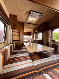 Roulotte Vintage NARDI PATRIZIA II - TARGATA e Circolabile previa revisione. Pezzo Unico Anni '70 (1976) Si tratta di una rara Nardi Caravan Patrizia II. Questa roulotte vintage è in discrete condizioni per l'età, con struttura solida e targatura originale che la rende legalmente omologata per circolare su strada pubblica, campeggi e trasferimenti brevi, rarissimo per vetture d'epoca. Ruote singolo asse con gomme in stato non idoneo per il trasporto (da sostituire), piedini di appoggio integrati. Arredo originale preservato al 90%: 5 posti letto + 2 castello (7 totali), tavolo centrale estraibile. Bagno separato con lavandino (di recente sostituzione) , Pavimenti in linoleum e tapezzeria (da rifare causa infiltrazioni). atmosfera autentica anni '70, necessario restauro per infiltrazioni. Include wc portatile, attacco luce esterno. Ideale per campeggio stanziale previa restaurazione, per amanti del Fai Da Te. Nota: se interessati è disponibile anche verenda con relativa paleria. Zona Bergamo (BG) – No Scambio, Prezzo Trattabile. Contattami per ulteriori foto, informazioni, o visita.