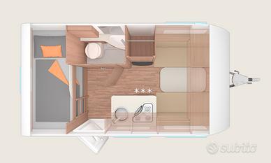 4 posti letto, due a castello e una dinette trasformabile in letto matrimoniale.