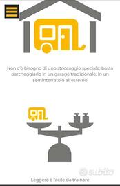 il modello trend 380 ha il tetto sollevabile con pannelli rigidi e finestre incorporate e peso kg. 1000