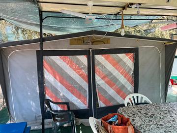 Roulotte CI Libera 400, 4 posti letto, compreso avantenda e tenda cucinino 180x180, inclusi tutti gli accessori (es. tavolo, sedie, cucina e forno, frigorifero, paleria, ventilatori, cablaggi, gazebo 4x2, tappeto drenante, ecc) sempre tenuta al coperto in rimessaggio. per info 3.2.8.5.3.6.2.5.5.7