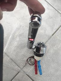 Rubinetto reclinabile van/camper con funzione miscelatore calda/fredda completo di switch 12v integrato per eventuale utilizzo comando pompa/elettrovalvola per ottimizzare utilizzo risparmio acqua in camper. dispositivo nuovo con attacco porta gomma ed adattatori attacco rapid tubi John ghest.