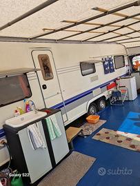 Vendo ruolotte Hobby lunghezza 9,15, cabina 7,30 x2,50, mai viaggiata, con veranda marca Regina del 2021 con paleria in fibra, sacco copertura invernale del 2021, collaudata 2025 e pronta per stradale, in perfette condizionie mai tempestata.
