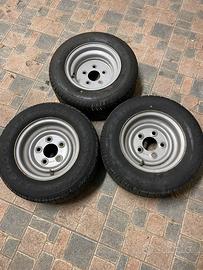 Vendo tre ruote complete per carrello auto da 10 pollici. Misura 195/55/10C. La ruota di scorta è nuova, mai usata.