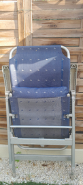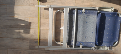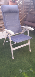 Vendo 4 sedie con schienale alto lavabili con cuscino, in alluminio. Leggerissime adatte per camper. Vendo per vendita camper. 40€ per ogni sedia.