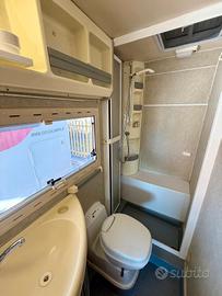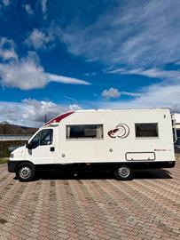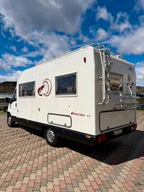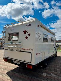 Marca: Arca Modello: Arcadia 430 Posti omologati : 5 Lunghezza: 697 cm Posti letto: 4 CC 2500 Climatizzatore Motore Autoclima Veranda TV Portabici Riscaldamento webasto Sensori di parcheggio Raffrescatore Viesa Doppio serbatoio acque chiare Portapacchi è scaletta Allarme Cucina 3 fuochi Finestre size con oscuranti ezanzariera Porta con zanzariera Letto alla francese