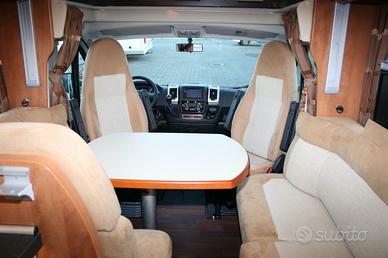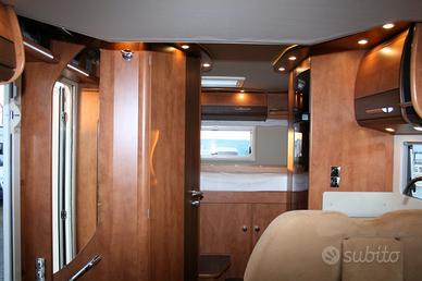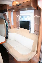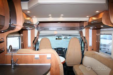 Veranda, letto basculante elettrico con oblò Sky roof su cupolino, SUPERPACCHETTO ( clima cabina automatico, alternatore maggiorato, sedili regolabili in altezza ed inclinazione, cruise control, chiusura centralizzata porte cabina e porta cellula con telecomando con funzione coming home, radica cruscotto e griglie di areazione in color argento, oscuranti Remis in cabina , impianto radio DAB Kenwood DMX125 doppio din touchscreen, retrocamera Carthago, oblo' Midi-Heki al posto dello standard, illuminazione regolabile, frigorifero da 142 lt a compressore 12V, porta cellula Luxus con doppia chiusura di sicurezza/finestra/chiusura centralizzata , zanzariera avvolgibile porta cellula, tavolo giorno Luxus, materasso letto posteriore in schiuma fredda a 7 zone, box di stivaggio nel doppio pavimento, coprimozzi Carthago, Turbovent zona cucina, garage posteriore con feltro su pareti , reti portaoggetti e luci led ad apertura porta,illuminazione barra 4 mt led in veranda , Sog, set tubi di scarico, predisposizione antenna satellitare, piedini di stazionamento, sistema di sicurezza in viaggia Truma secumotion con scambiatore automatico bombole Duocontrol), meccanica 2300cc 150 cv, sistema di estrazione TFT quick up con TV da 19?, pannello solare, antifurto perimetrale e volumetrico, antenna TV terrestre, presa 12v aggiuntiva, 4 prese USB camera e living , doppio pavimento, luci diurne a led anteriori, doppio airbag, ABS, ASR, ESP e Traction Plus, assistenza alla salita Hill Holder.