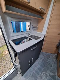 Splendido camper semi-integrale GIOTTILINE SIENA 330 motore FIAT con letto matrimoniale alla francese, letto basculante singolo e dinette trasformabile in letto singolo ,compreso di pack privilege, pack sport, cerchi in lega da 16", porta 2 punti, tappezzeria giglio, truma 4000 gas, radio 6,8