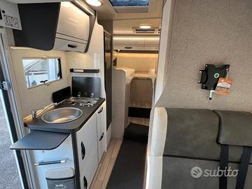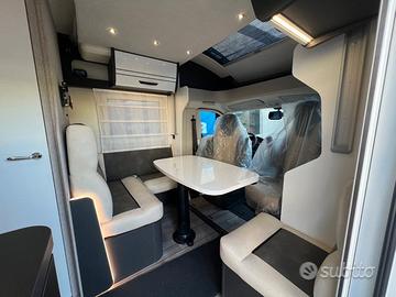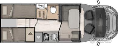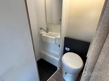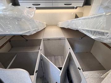 Bagno con doccia a chiusura a box, cucina molto pratica con il frigo da 142 l. e la zona living con i sedili cabina girevoli creano un ottima zona giorno.