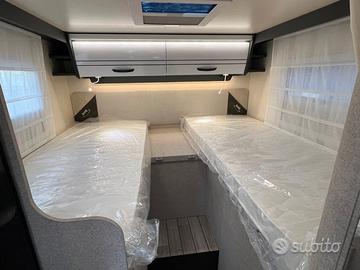 Il nuovo modello MC4 365 ha una lunghezza di cm 699, due comodi letti gemelli con trasformazione in matrimoniale e un buon garage.