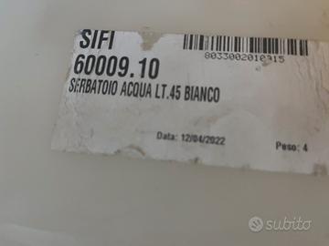 Vendo per cambio progetto un serbatoio per l'acqua da 45 litri usato ma in buone condizioni. Perfetto per la camperizzazione di un van. Il serbatoio è lungo 82 cm, profondo 28 e alto 20. È già forato per un portagomma da 1/2 pollice che fornisco assieme al serbatoio e sono presenti altri due fori pre-filettati ma chiusi. Il tappo è stato forato e poi riparato e tiene perfettamente.