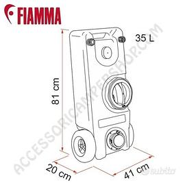 Tanica per acque nere ROLL-TANK 40 W FIAMMA, comprende una valvola di sfiato e indicatore di livello.