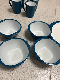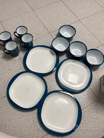 Set cena 12 pezzi della kampa per campeggio in plastica composto da 4 piatti, 4 ciotole e 4 bicchieri. Usati in buone condizioni. I piatti presentano dei segni come si vede in foto fatti dai coltelli per tagliare.