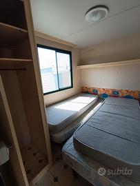 PREZZO SCONTATO DI FINE STAGIONE!!!Accessoriata, comprensiva di arredi e tappezzerie.Composta da: ingresso che si affaccia sulla zona giorno, completo di divano con tavolo ribassabile e cucina, camera matrimoniale, camerina con 2 posti letto e bagno completo di lavandino, doccia e WC.