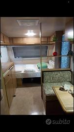 Vendo splendida roulotte Adria tenuta molto bene , 4 posti effettivi, ma con un po' di manualità si può installare il letto a castello. Cucina interna e frigo mai accesi ed utilizzati. Si vende completa di tettoia copri roulotte, pavimento in plastica della veranda con vari mobiletti di plastica da esterno e un paio di mobiletti di legno della cucina e tanto altro! La roulotte si trova in rimessaggio a Jesolo ! La roulotte è radiata! Perfetta per uso stagionale ! Prezzo trattabile !