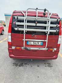 Camper Mercedes Viano 220 CDI 150 HP WESTFALIA, con cambio AUTOMATICO, ultimo tagliando a 312.000 km, 6 posti omologati, gancio traino, porta bici posteriore, impianto TV e stereo originali Mercedes, cerchi in acciaio con gomme invernali, tendalino esterno, copri tetto per pioggia reparto notte, doccetta esterna elettrica. Manutenzione importante effettuata: albero di trasmissione e freni anteriori.